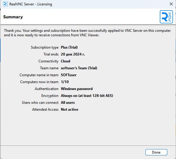 1) Перейдите в настройки VNC Connect (Server).