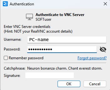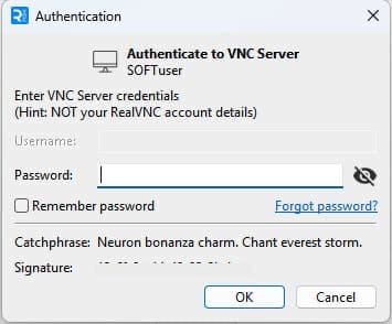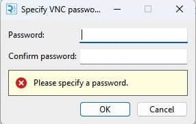 – Если выбран VNC Password, введите ранее созданный пароль.
