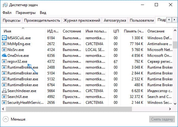Если перезагрузка не помогает и regsvr32.exe продолжает перегружать процессор, это может быть связано с тем, что какая-то программа или компонент ОС вызвали сервер регистрации для работы с DLL, но процесс завис.