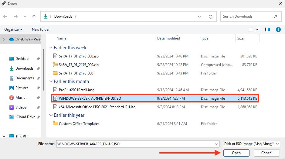 Select the boot method. Typically, “Disk or ISO image” is used.