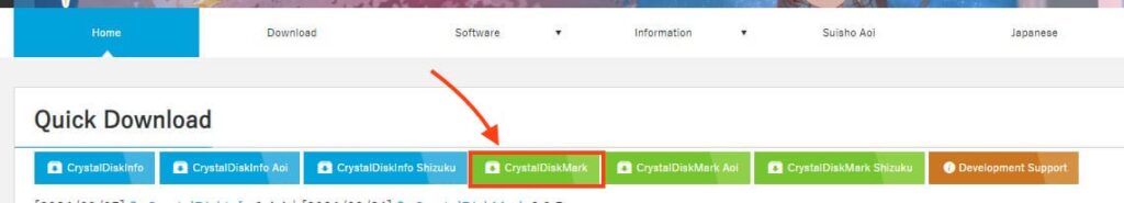Скачать CrystalDiskMark можно с официального сайта разработчика.