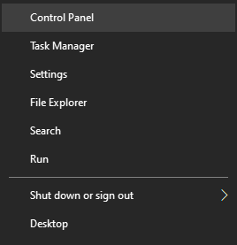 – Щелкните правой кнопкой мыши по Пуск и выберите Панель управления.