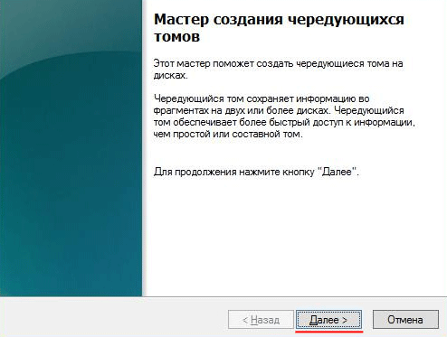Массив RAID 1 создается аналогичным образом, только на первом шаге вместо «Чередования» выберите «Зеркалирование».