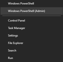 Щелкните правой кнопкой мыши по Пуск и выберите Windows PowerShell (Администратор).