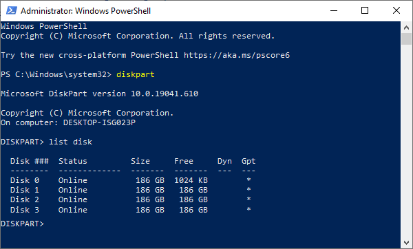 3) С помощью команды list disk отобразите список подключенных дисков.