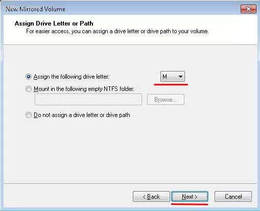 – M (Mirroring): для создания RAID 1 (зеркалирование).