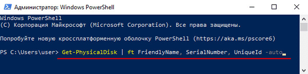 Get-PhysicalDisk | ft FriendlyName, SerialNumber, UniqueId –auto