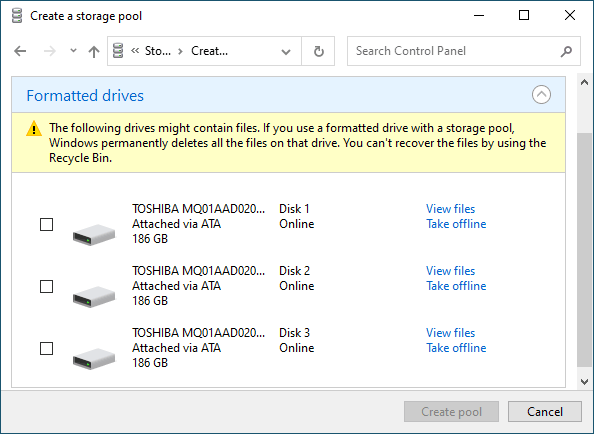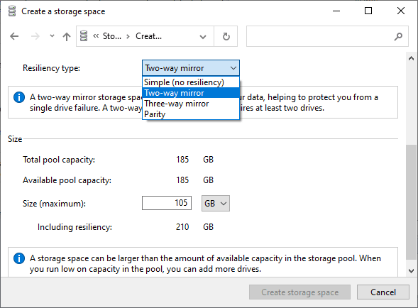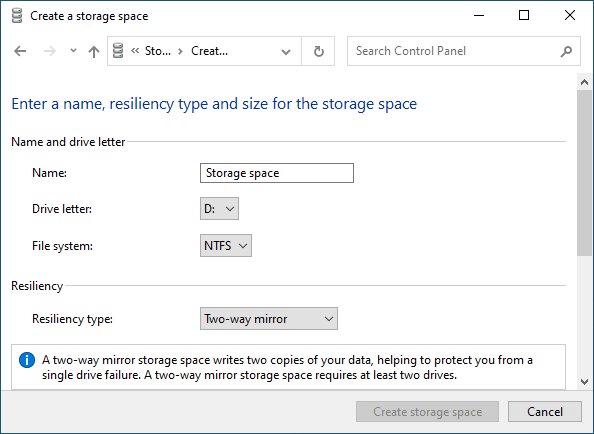 Windows 8 и 10 имеют встроенную функцию «Дисковые пространства», которая позволяет создать программный RAID без дополнительного оборудования.