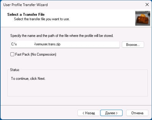 7. Дождитесь завершения процесса переноса данных и конфигурации профиля: будут перенесены не только файлы, но и записи реестра, ACL, параметры приложений UWP.