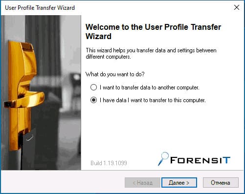 1. Запустите Transwiz на том компьютере, куда осуществляется перенос, и выберите пункт «I have data I want to transfer to this computer» («У меня есть данные, которые я хочу перенести на этот компьютер»).
