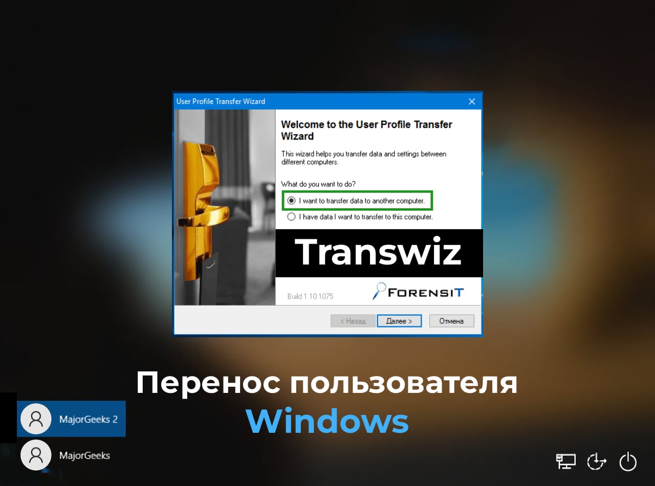 Transwiz — это бесплатное приложение для личного использование , которое позволяет легко перенести профиль пользователя вместе со всеми данными в пользовательских папках на новый компьютер, восстановить параметры и данные профиля после переустановки системы, а также выполнить перенос в другую учётную запись на том же устройстве. В этой статье подробно рассмотрим, как использовать это приложение.