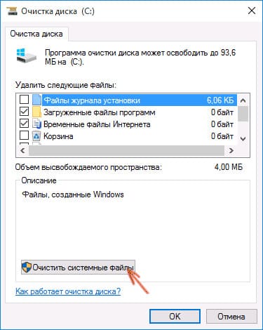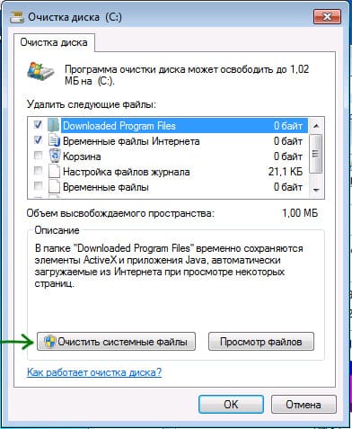 2. В утилите очистки диска нажмите Очистить системные файлы.