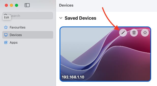 2. In the Windows App, select the previously added computer and click Edit.