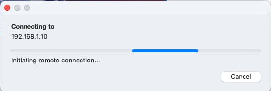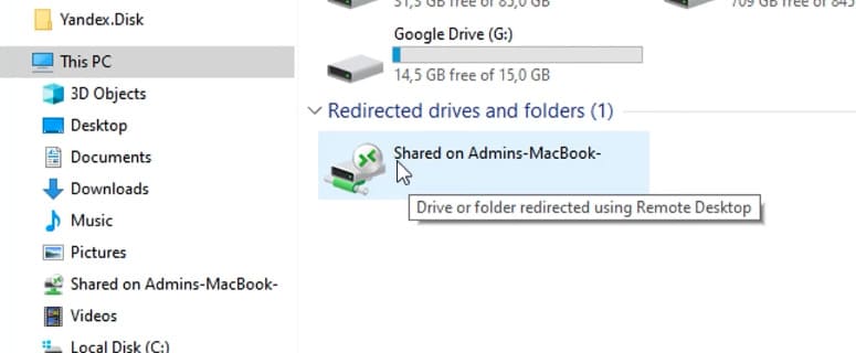 When connecting, enter the Windows user’s login and password. If a certificate warning appears, simply confirm the connection.