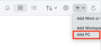 1. Click the + in the top-right corner, then select Add PC in the main app window.