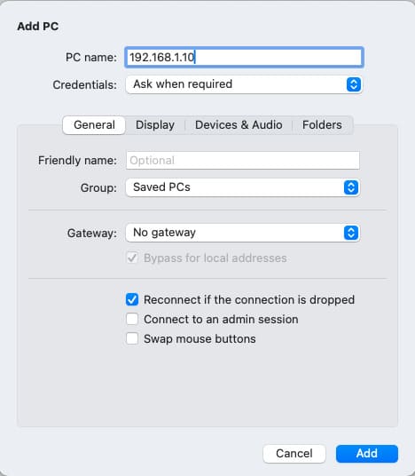 4. Double-click the added computer to connect.