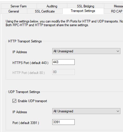 – UDPPort (по умолчанию) — 3391/UDP (использование UDP повышает производительность).