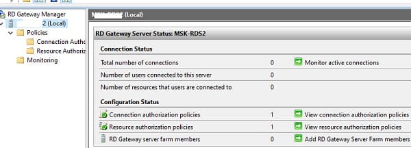 8. Для отслеживания подключений к шлюзу можно использовать раздел Monitoring в RD Gateway Manager.