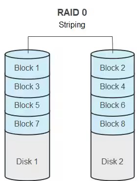 Чередование: RAID 0 применяет метод чередования для организации данных, что подразумевает запись файлов на несколько дисков в массиве.