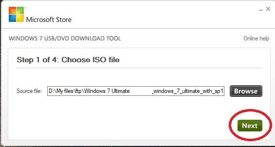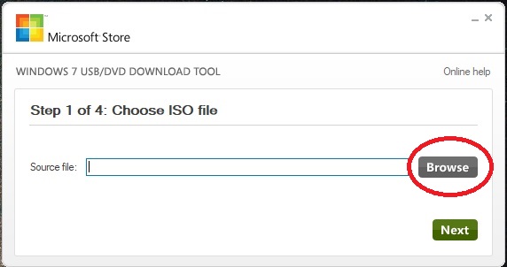 The Windows 7 USB/DVD Download Tool is very easy to use. After installation, run the shortcut on your desktop to open the program: