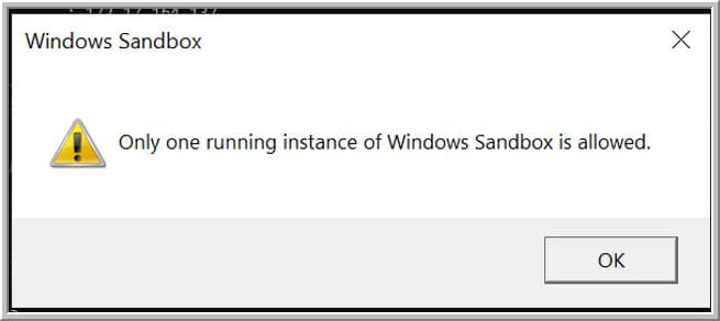 Одновременно можно запустить только одну копию Windows Sandbox. При попытке открыть вторую песочницу появится сообщение: “Only one running instance of Windows Sandbox is allowed.”