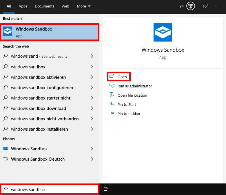 После перезагрузки найдите Windows Sandbox в меню “Пуск” или запустите его командой WindowsSandbox.exe.