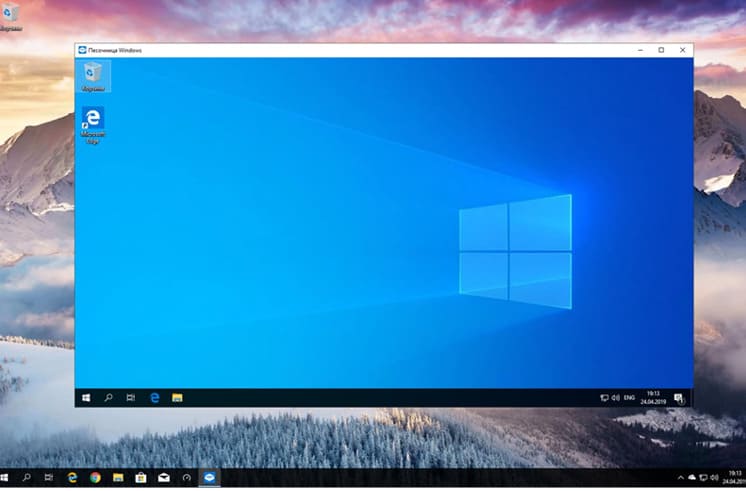 Откроется окно с рабочим столом “чистой” версии Windows 10 с настройками по умолчанию. Внутри песочницы уже интегрированы все актуальные обновления безопасности и драйверы.